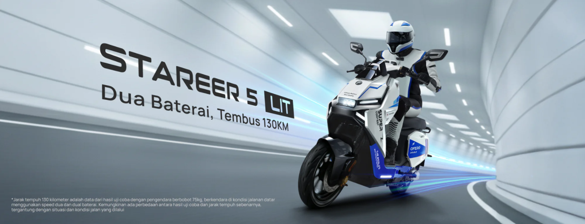 Tampilan yang menyerupai motor listrik menjadikan Stareer 5 Lit relevan bagi remaja, pekerja aktif, hingga pengguna keluarga.